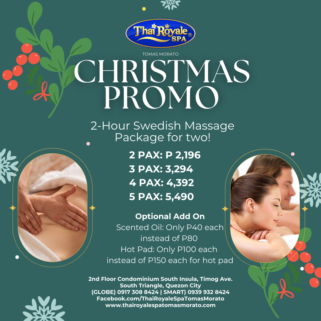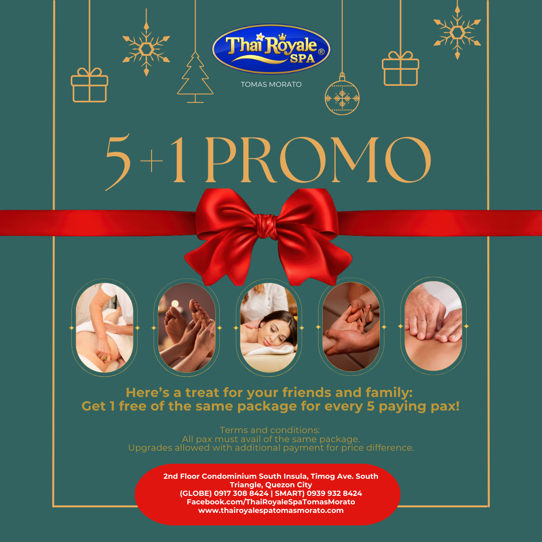 Discover the ultimate rejuvination experience at Thai Royale Spa Tomas Morato, proudly hailed as the Number 1 Massage Spa in Tomas Morato. Nestled conveniently near the Tomas Morato-Timog Ave Rotonda (11th World Scout Jamboree Memorial Rotonda), our spa is your oasis of serenity in the bustling heart of Quezon City. We pride ourselves on being a family-friendly spa, welcoming guests of all ages to unwind in our soothing ambiance. Located near popular neighborhoods like Timog Ave, South Triangle, Tomas Morato Ave, Kamuning, and Kamias, we offer affordable massages that cater to your every need. Our skilled and well-trained male and female massage therapists are experts in the art of massage, specializing in a range of techniques, including foot massages, Swedish massages, and traditional Thai massages. It’s no wonder we’ve been recognized as the Most Family-Friendly Spa in the Philippines. Come experience the tranquility and rejuvenation that Thai Royale Spa Tomas Morato has to offer. Your journey to wellness starts here.